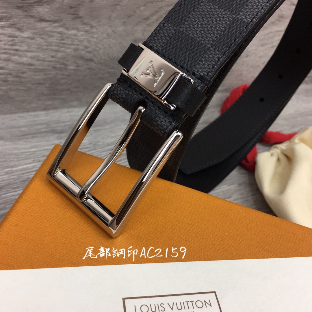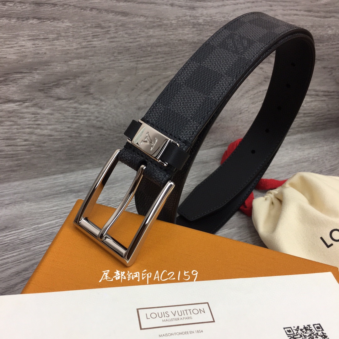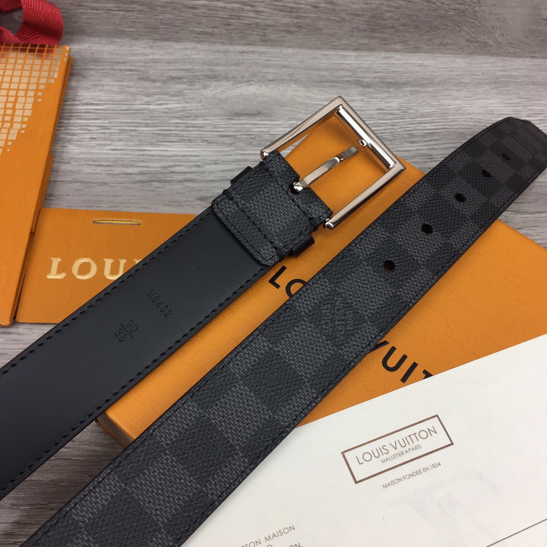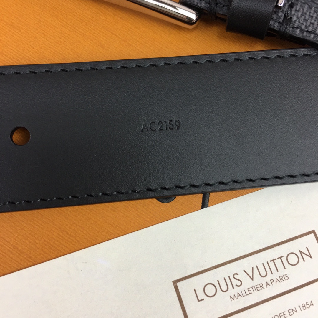 L. 퐁뇌프 3.5cm 체커보드 벨트 블랙