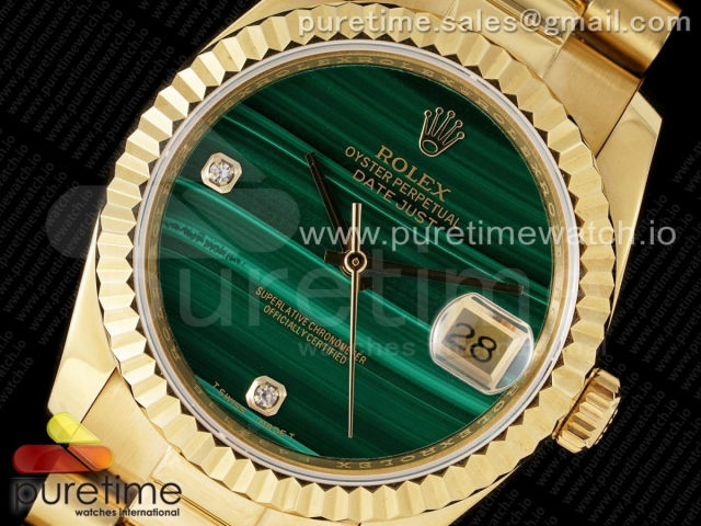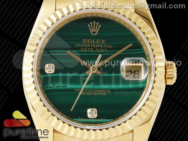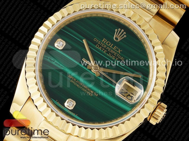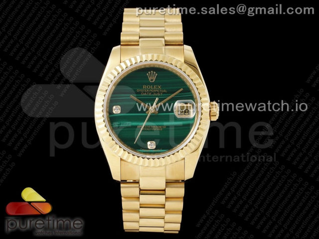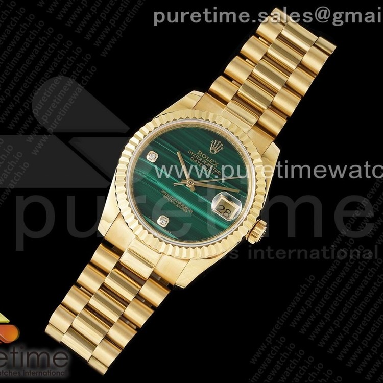 [DD]. R. 데이데이트 36MM 옐로우골드 그린스톤다이얼 스타일2
