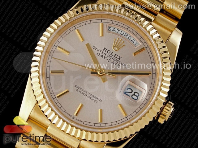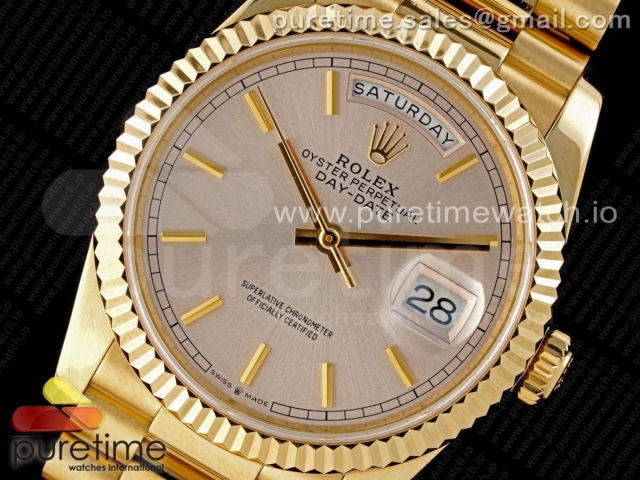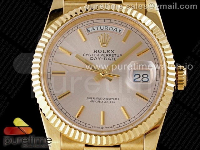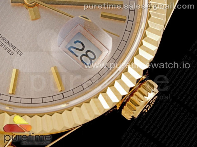[GM] R. 데이데이트36MM 옐로우골드 실버 바인덱스다이얼