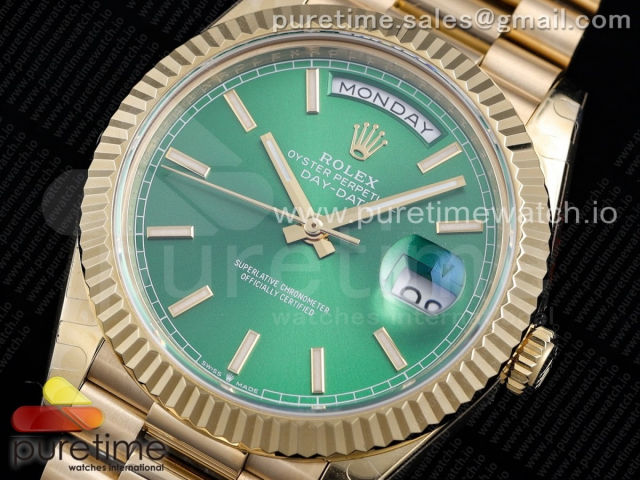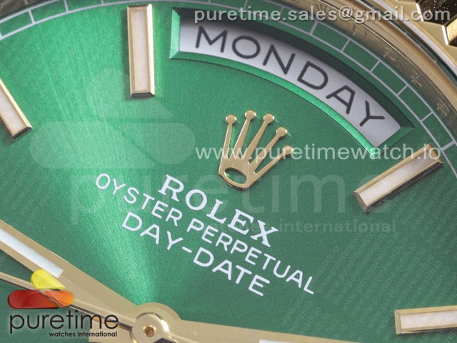 [GM] R. 데이데이트40MM 옐로우골드 그린 바인덱스 다이얼