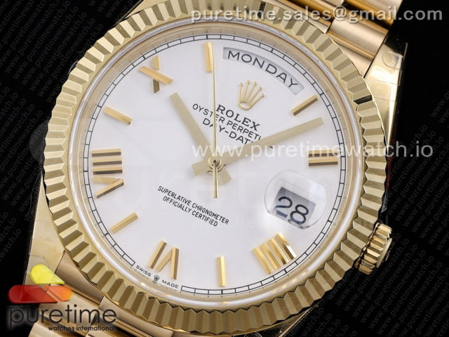 [GM] R. 데이데이트40MM 옐로우골드 화이트 로만 인덱스다이얼