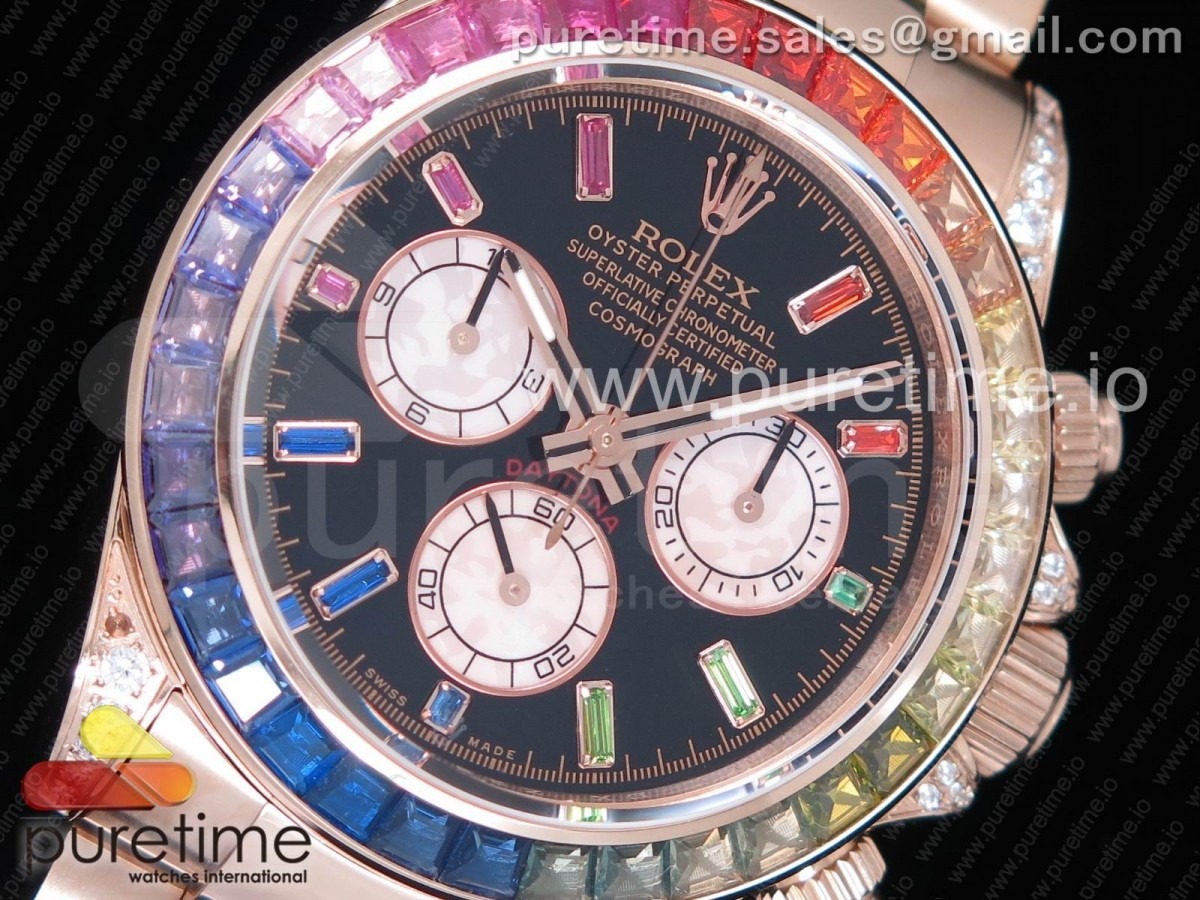 [BL] R. 데이토나 레인보우 크리스탈 Best Edition Black Dial on RG Bracelet A4130