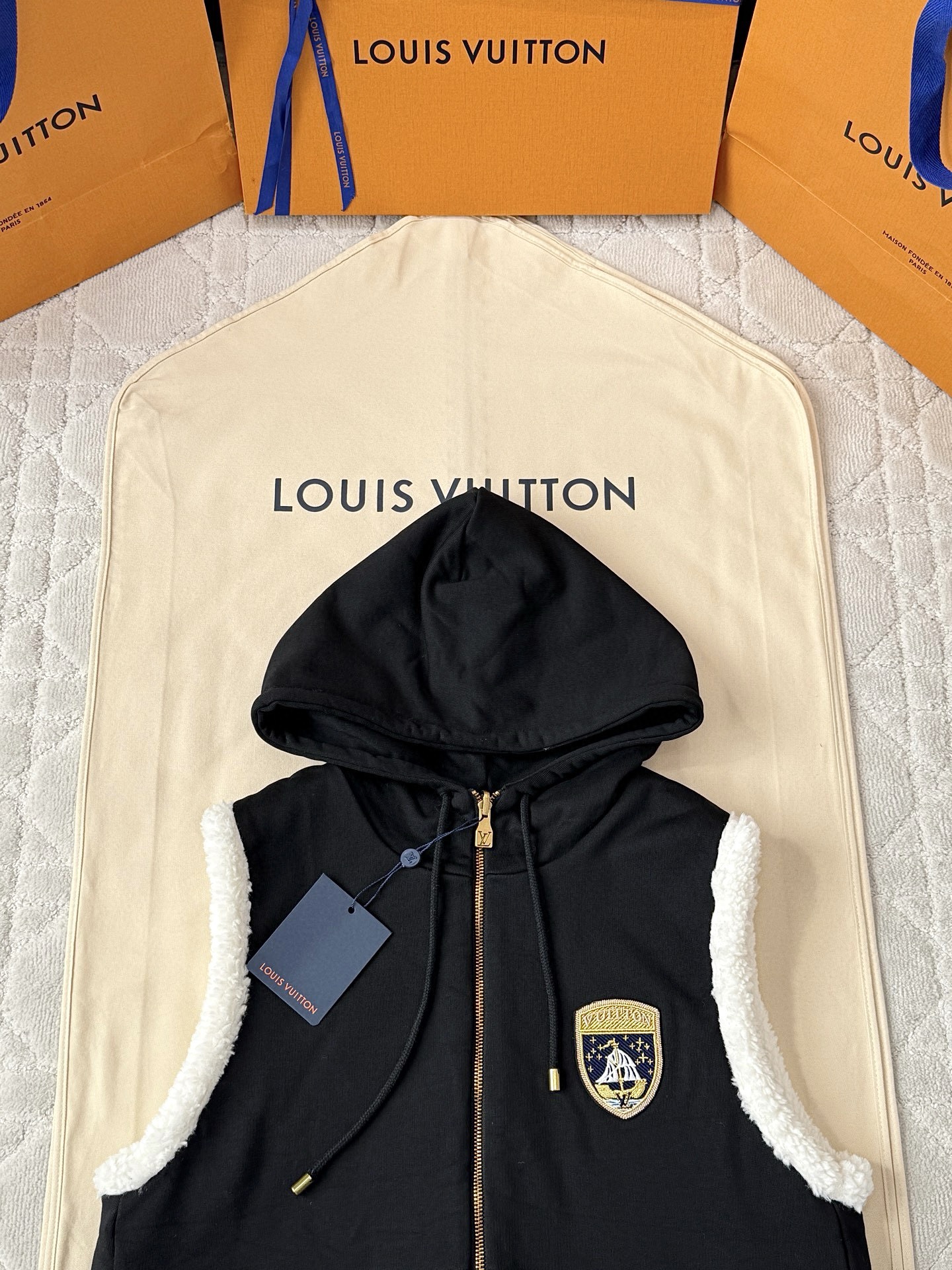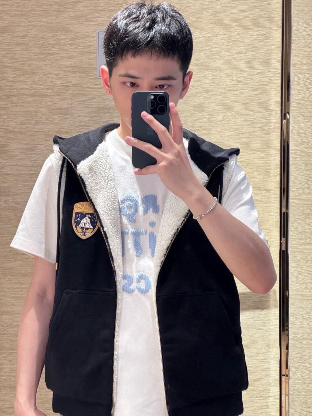 [AR] LV. 배지 자수 양면 조끼