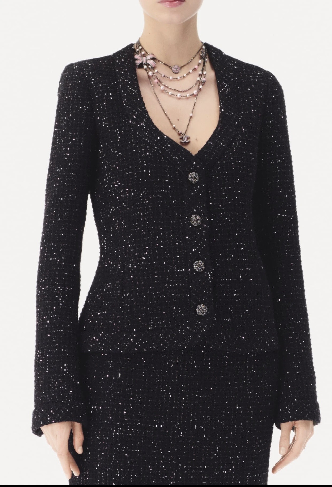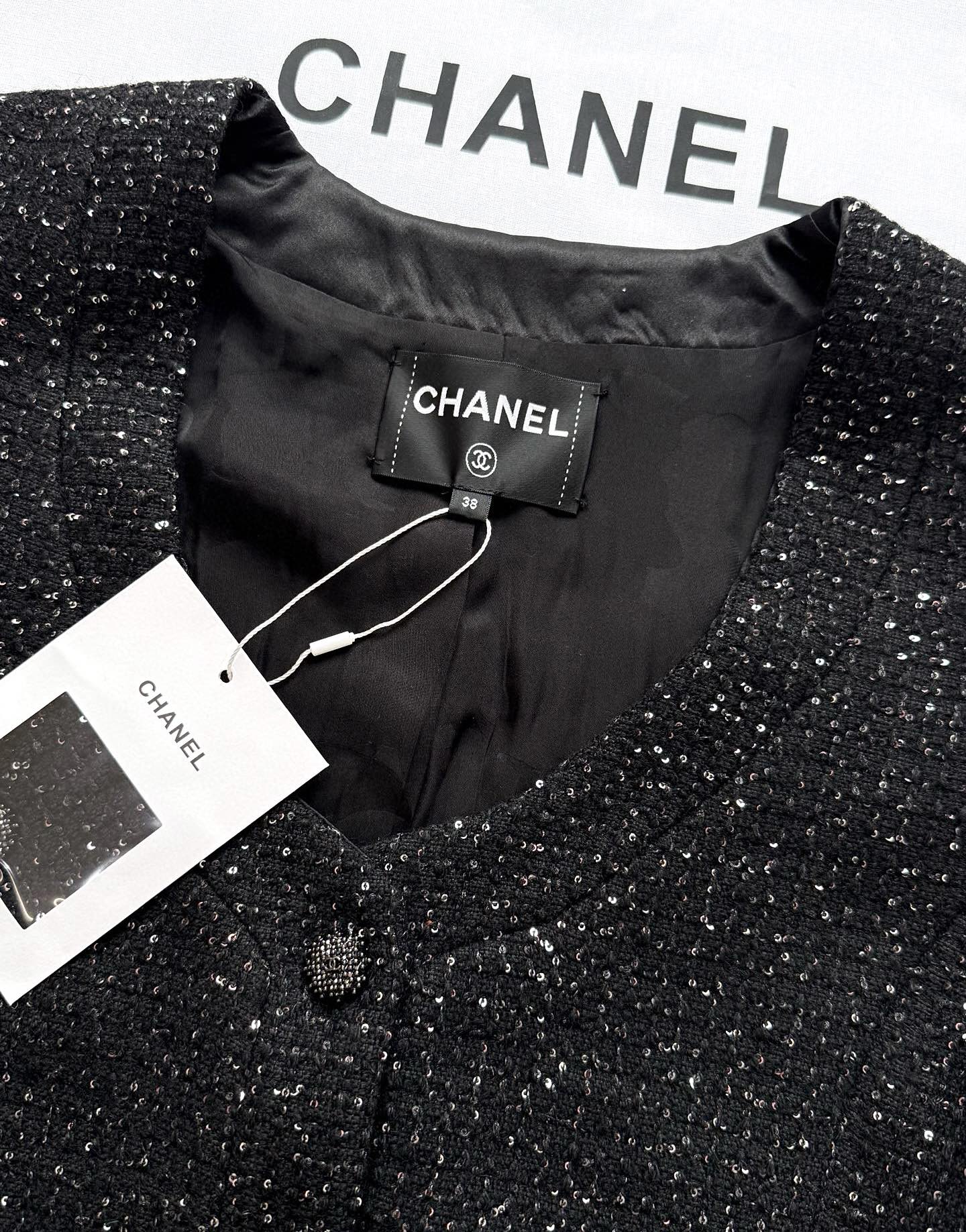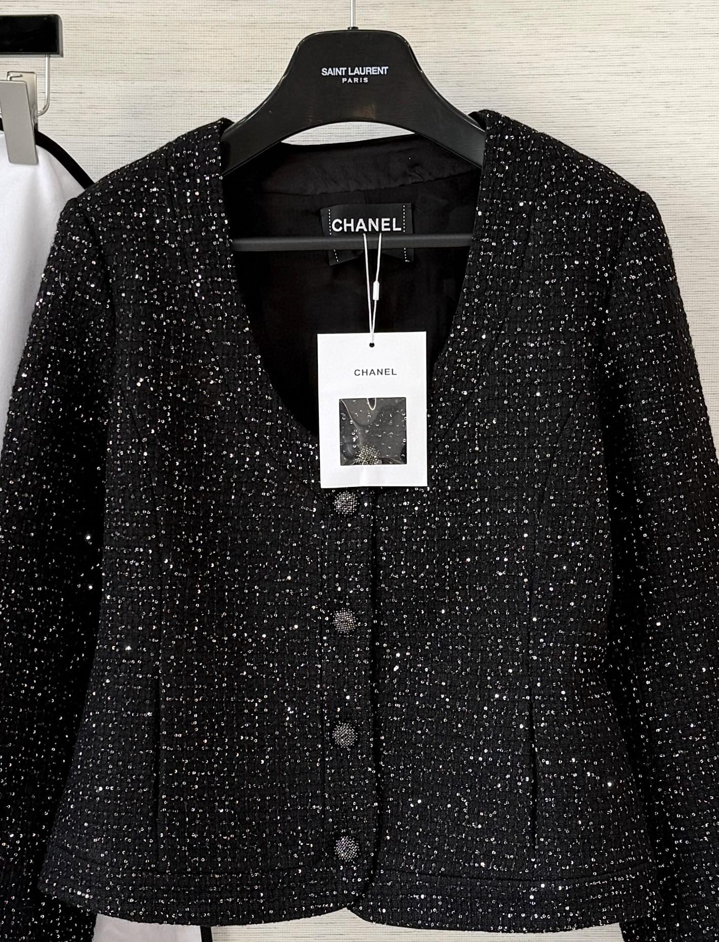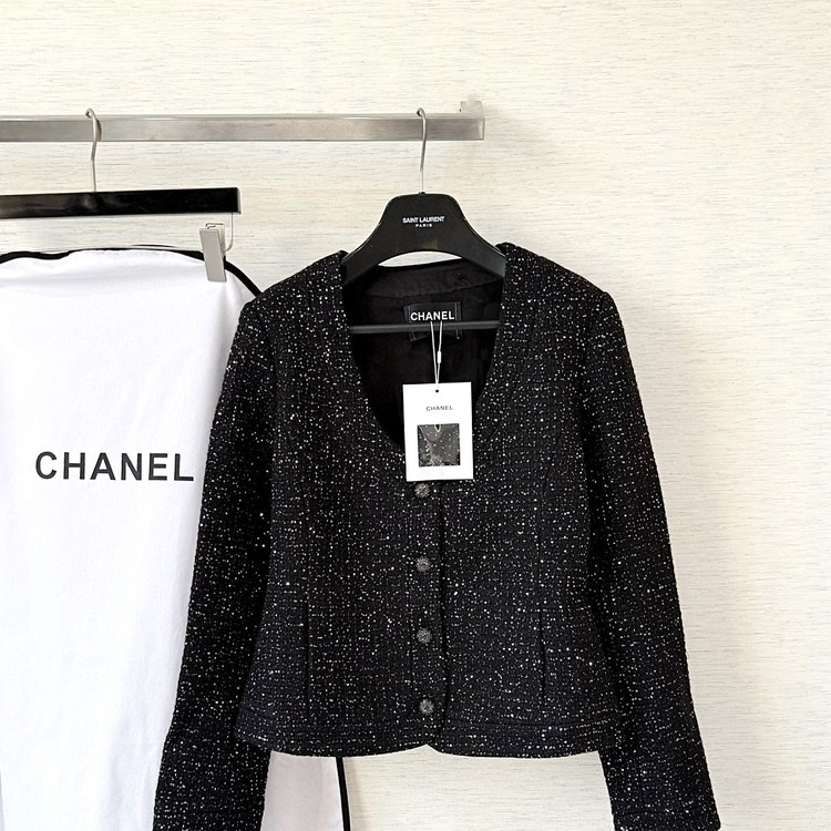 [AR] CH. 스팽글 U넥 트위드 재킷