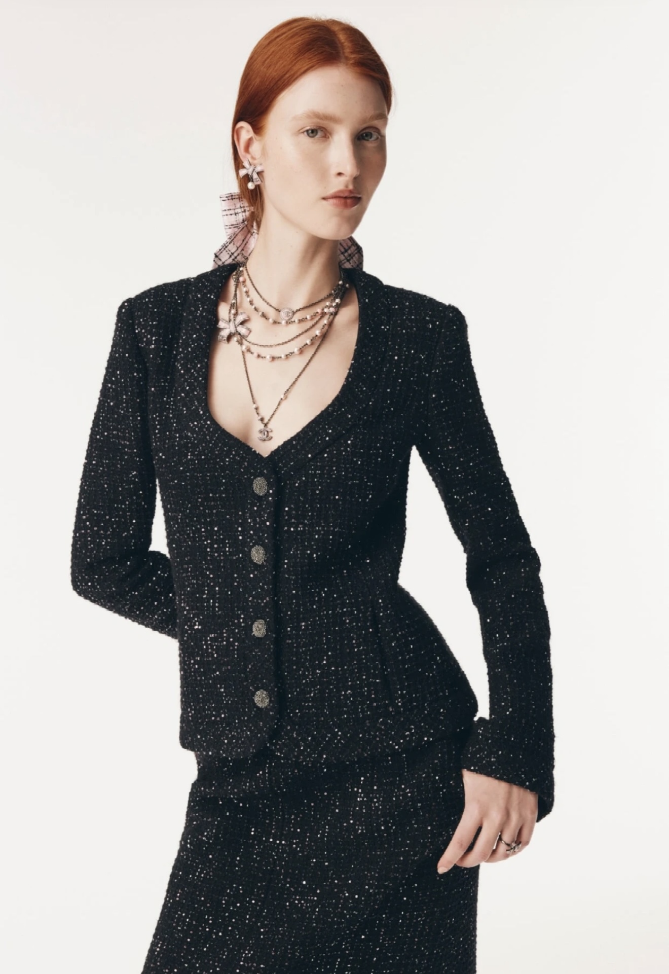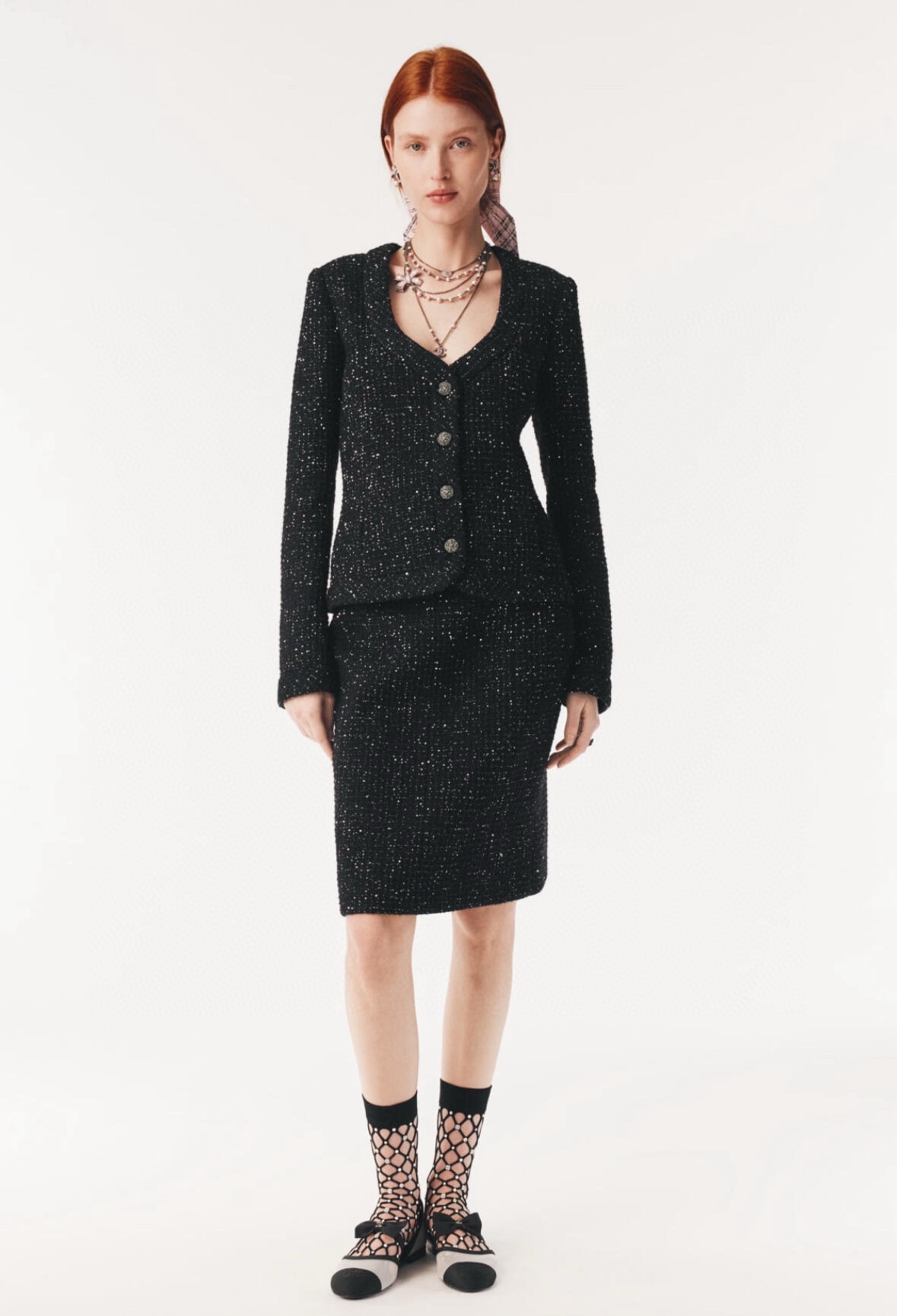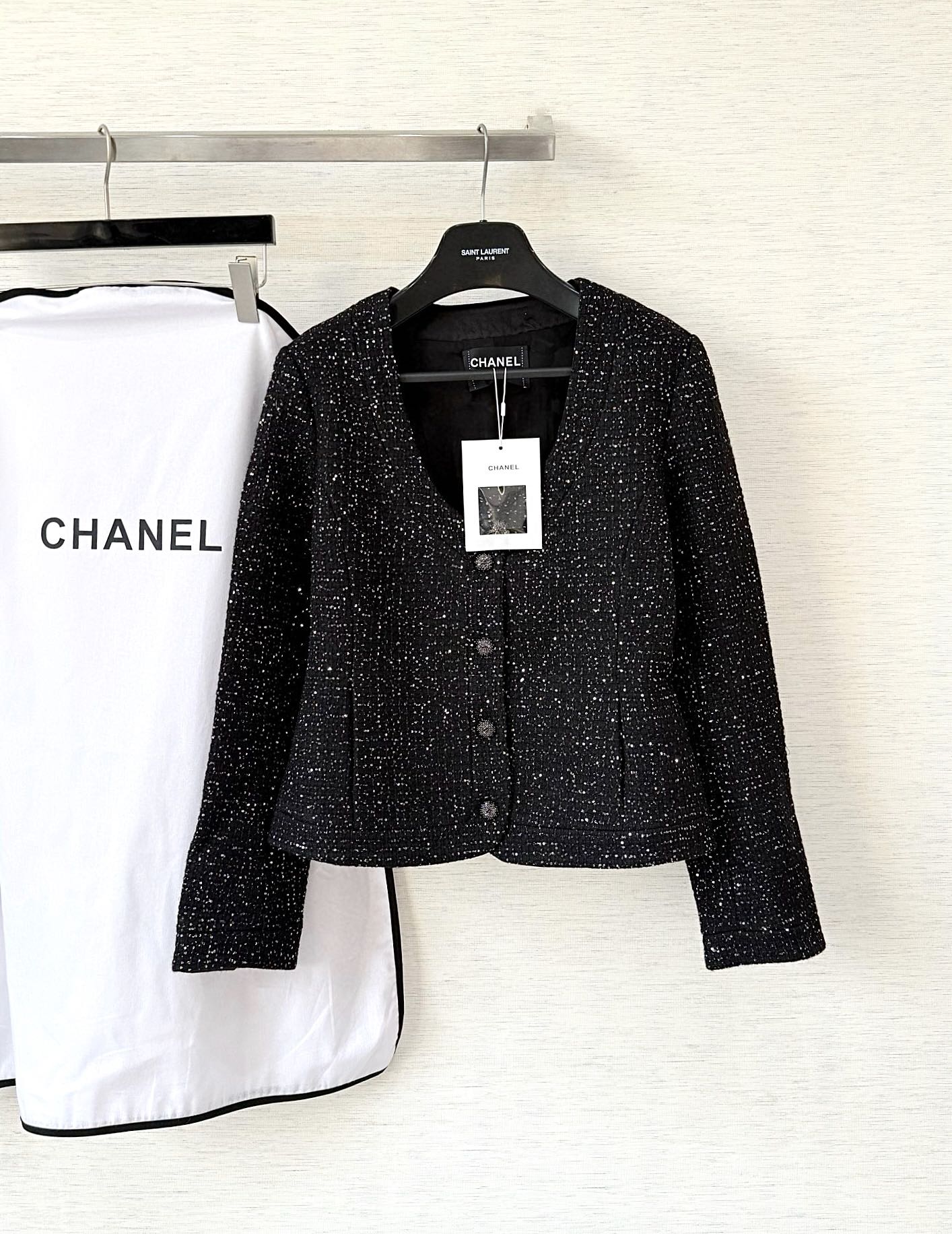 [AR] CH. 스팽글 U넥 트위드 재킷
