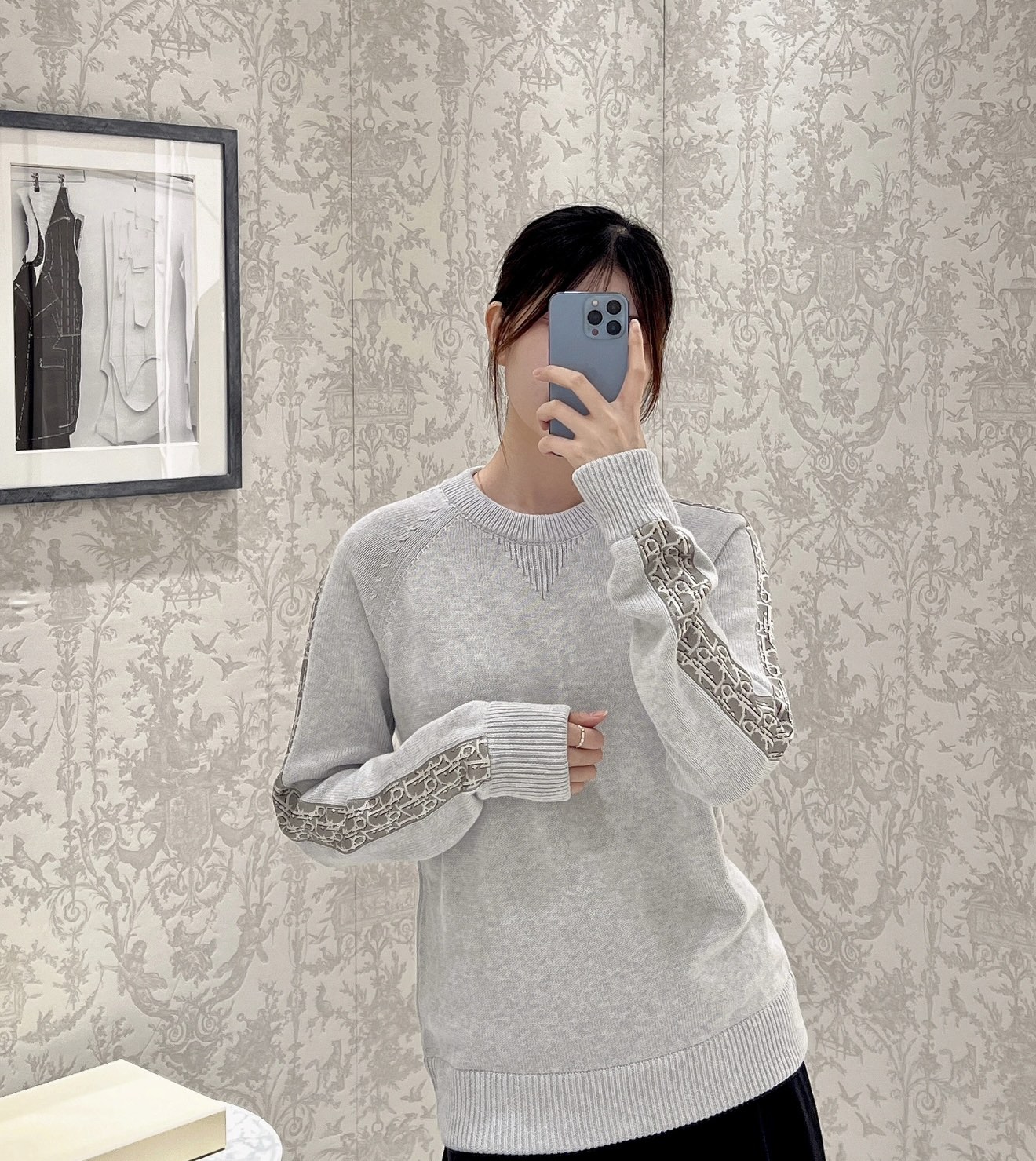[AR] D. 클래식 슬리브 웹 자카드 레터링 니트 크루넥 (2color)