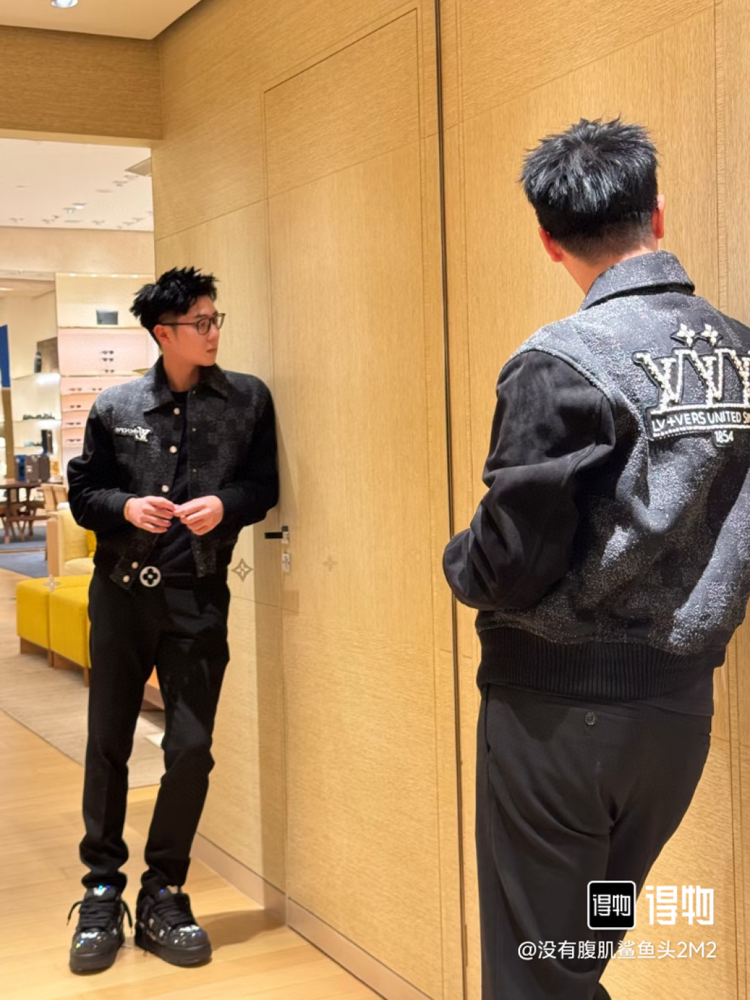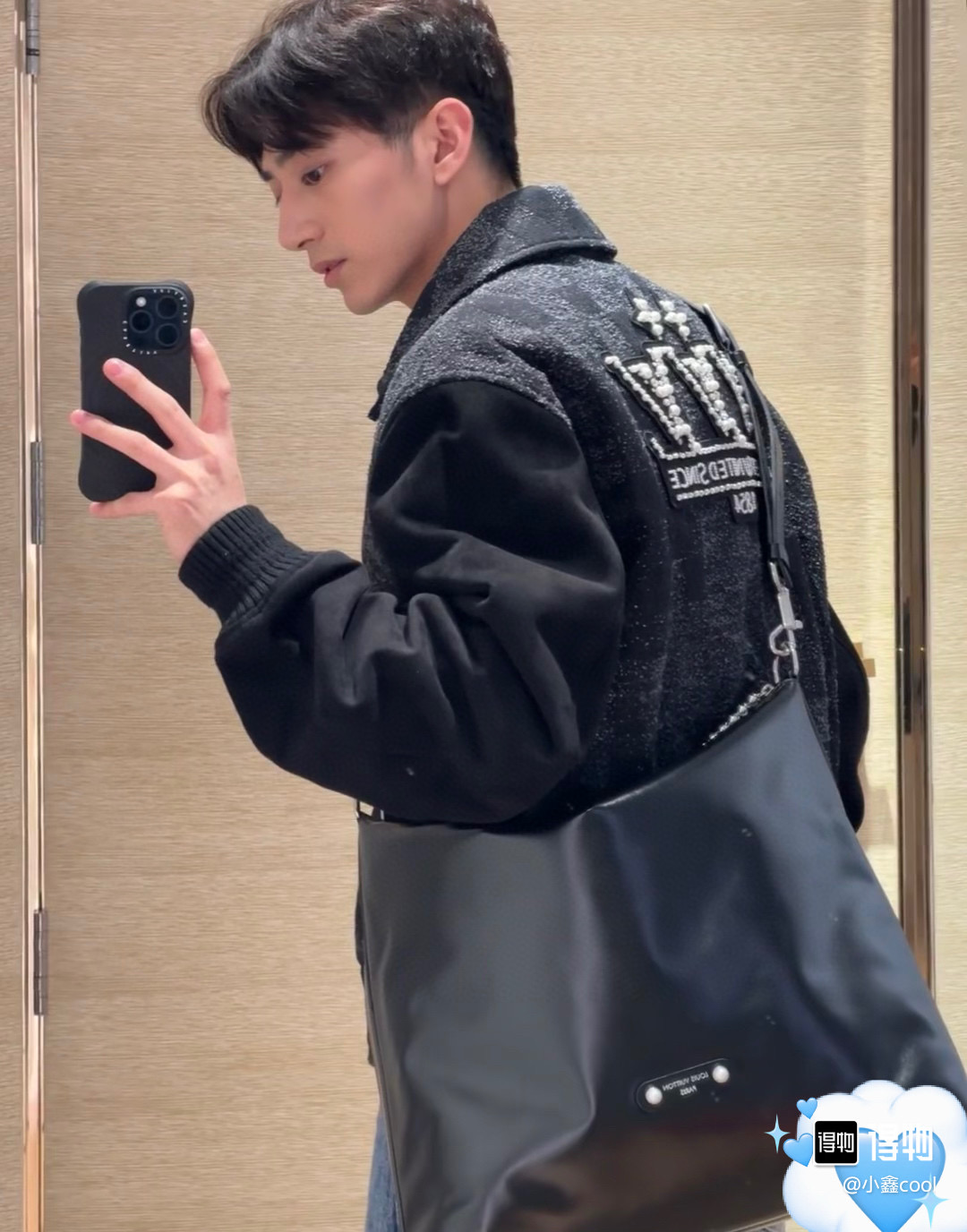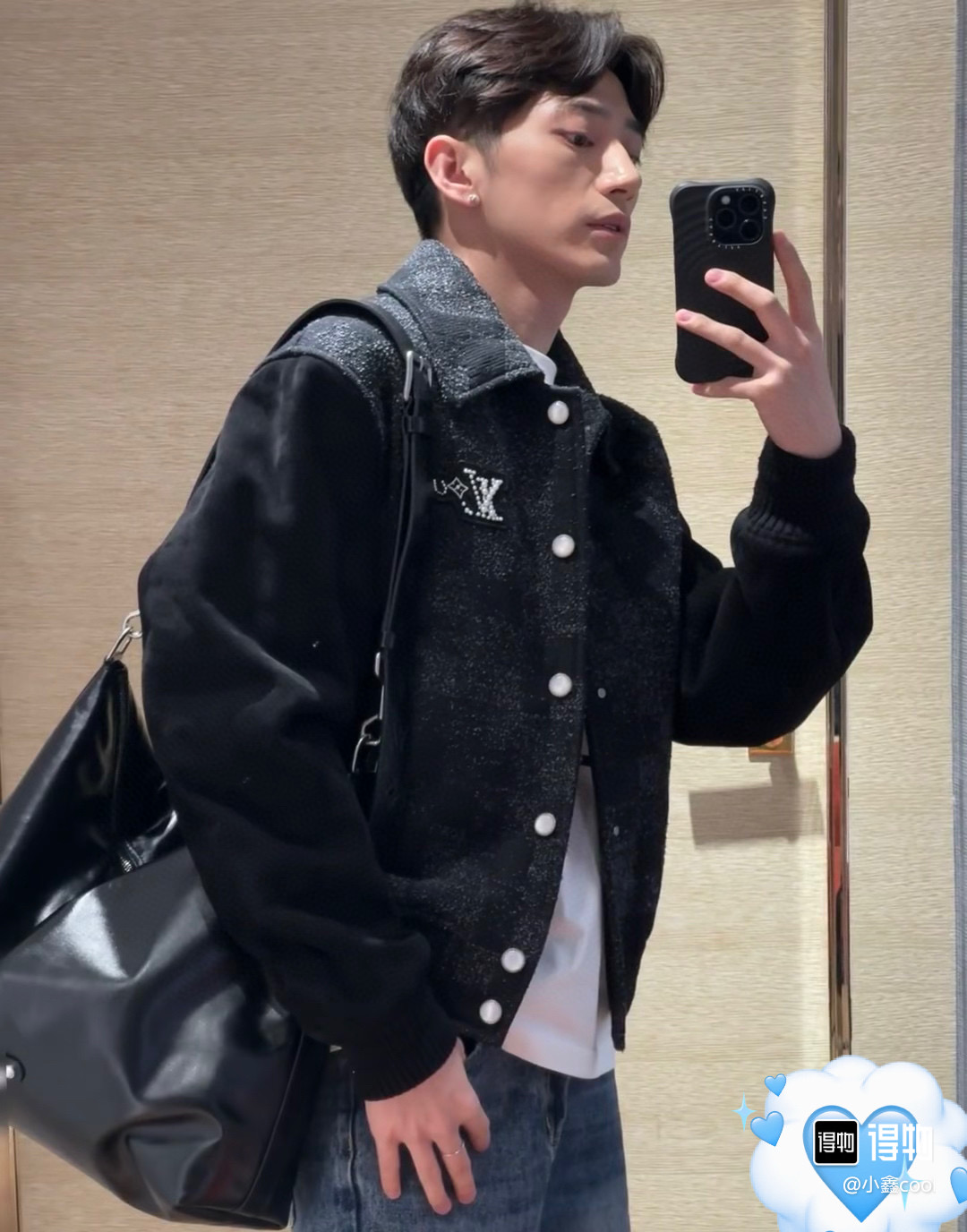 [잔디] LV. 믹스 레더 바시티 블루종