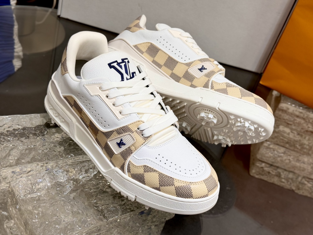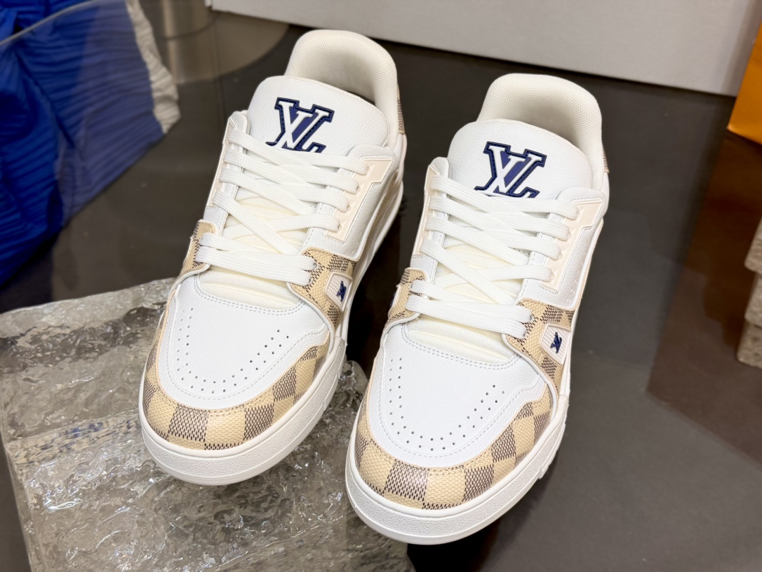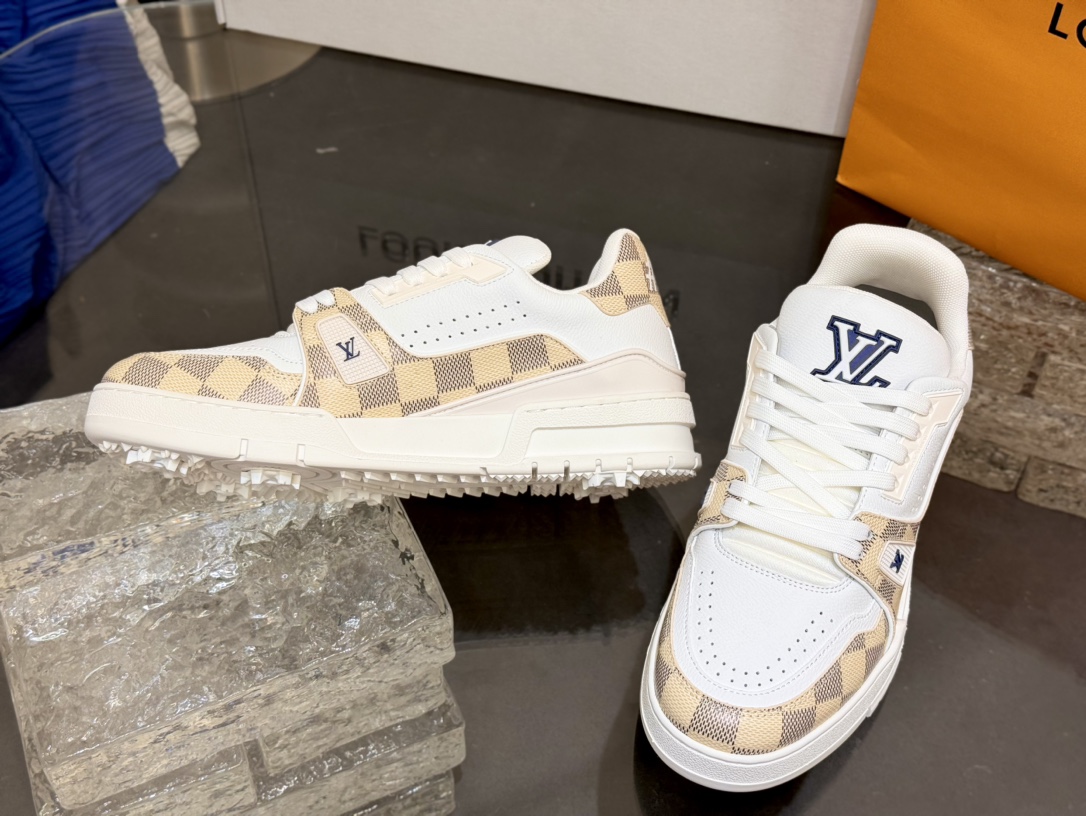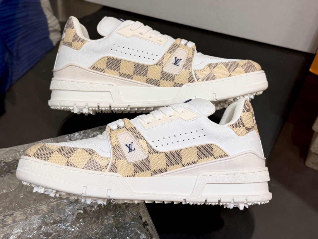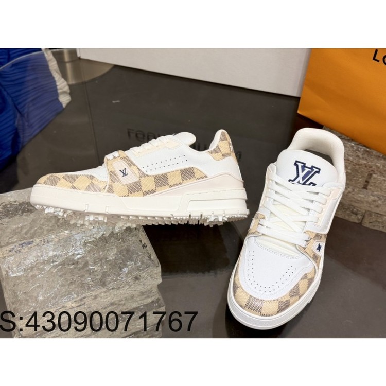 [152] L. LV 체커보드 이음 54# 스니커즈 라이트 옐로우