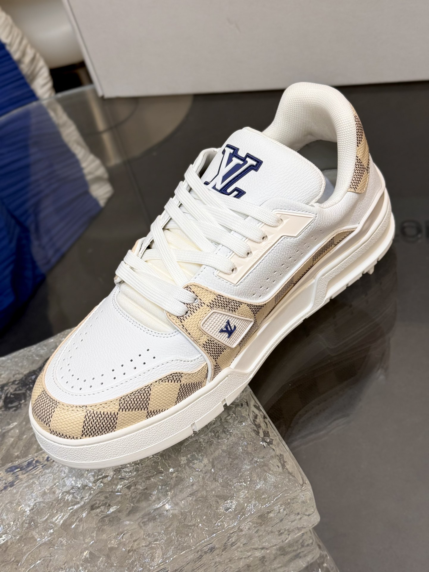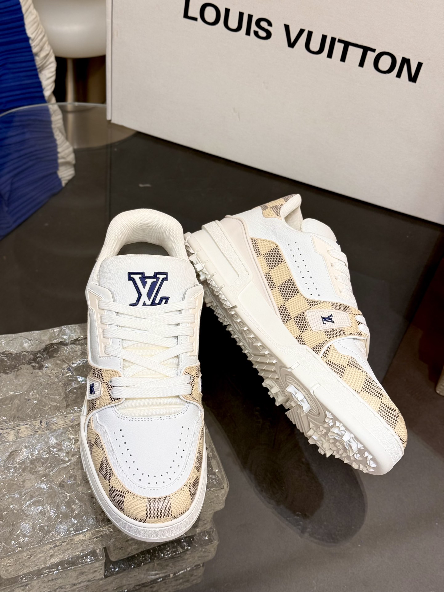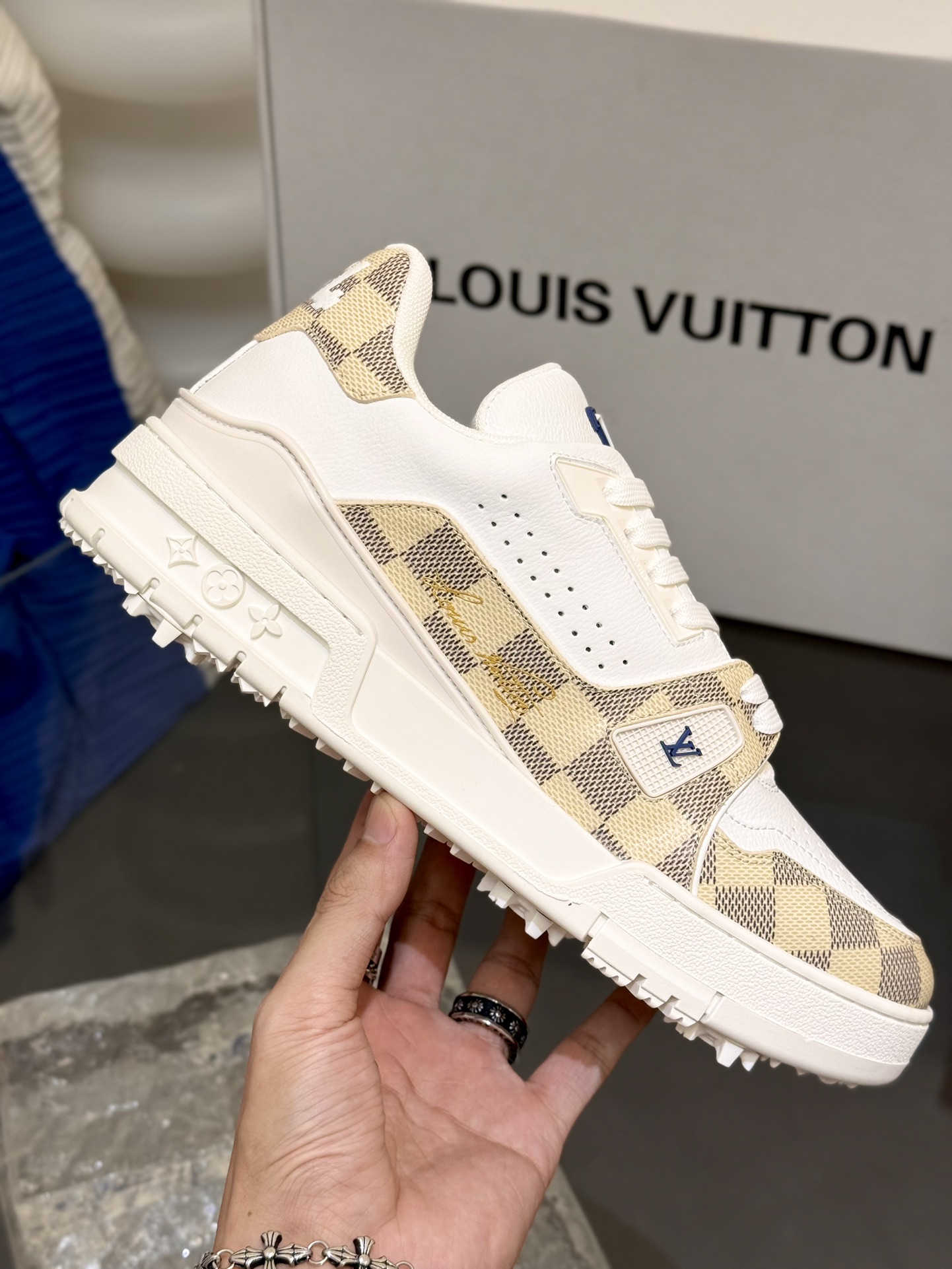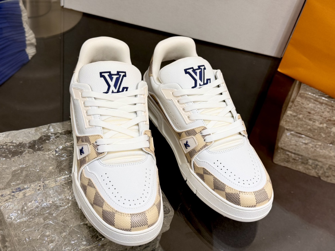 [152] L. LV 체커보드 이음 54# 스니커즈 라이트 옐로우