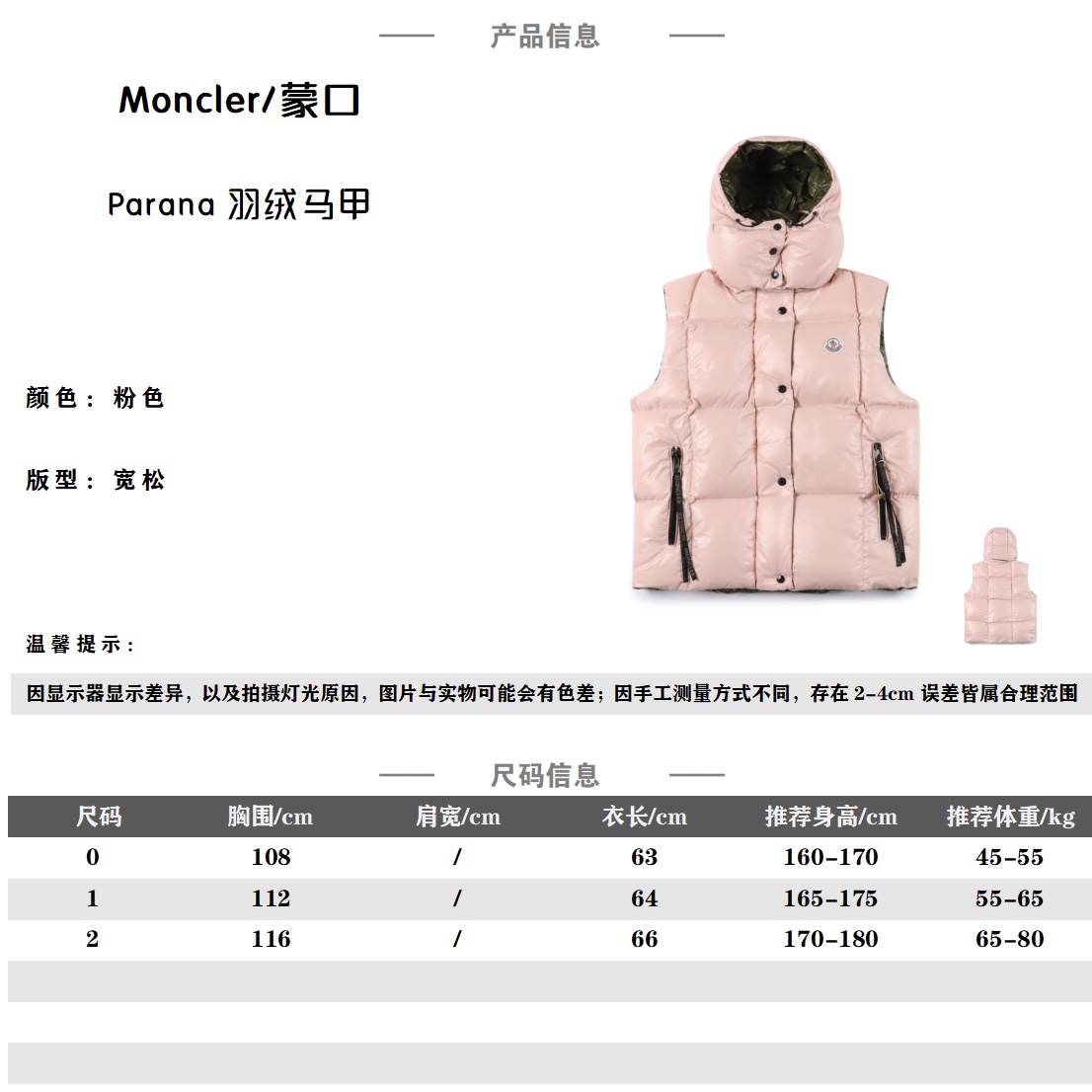 # 의류 제품의경우 키와 몸무게 같아도 체형이 모두 다르므로 현재 사이즈 추천은 진행하지 않습니다.